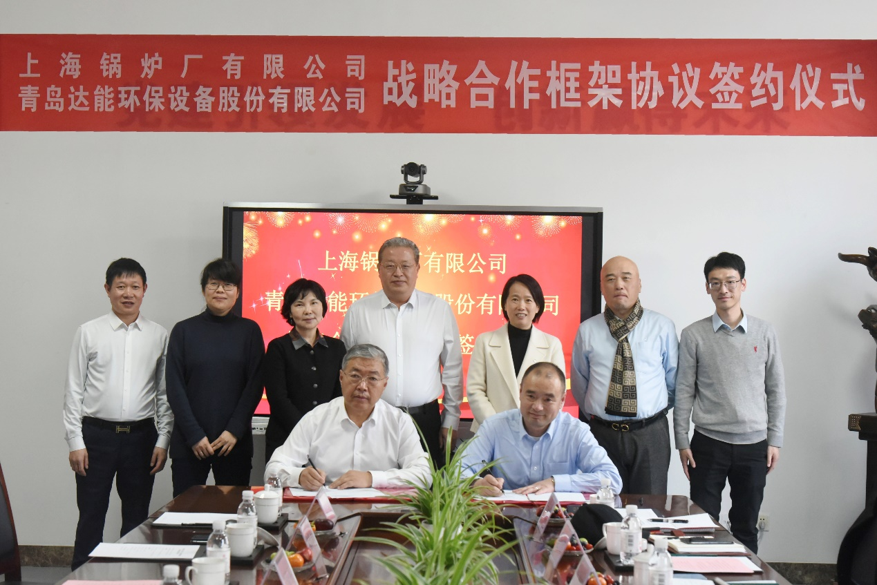3月3日,上海锅炉厂有限公司(以下简称“上锅”)与青岛达能环保设备股份有限公司(以下简称“青达环保”)签署战略合作框架协议,并举行商务洽谈交流会。上锅总经理姚丹花、副总经理陈朝晖,公司董事长王勇、总经理刘衍卉等领导出席签约仪式。